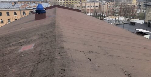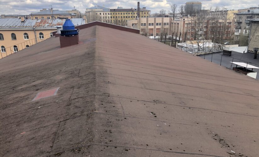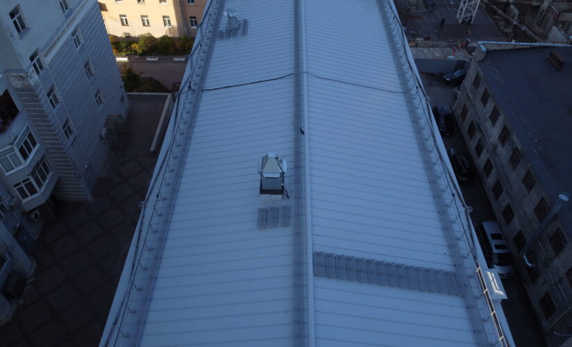 — монтаж фальцевой кровли с монтажом фасонных элементов, в качестве кровельного покрытия применялась кровельная сталь с полимерным покрытием толщиной 0,5 мм;