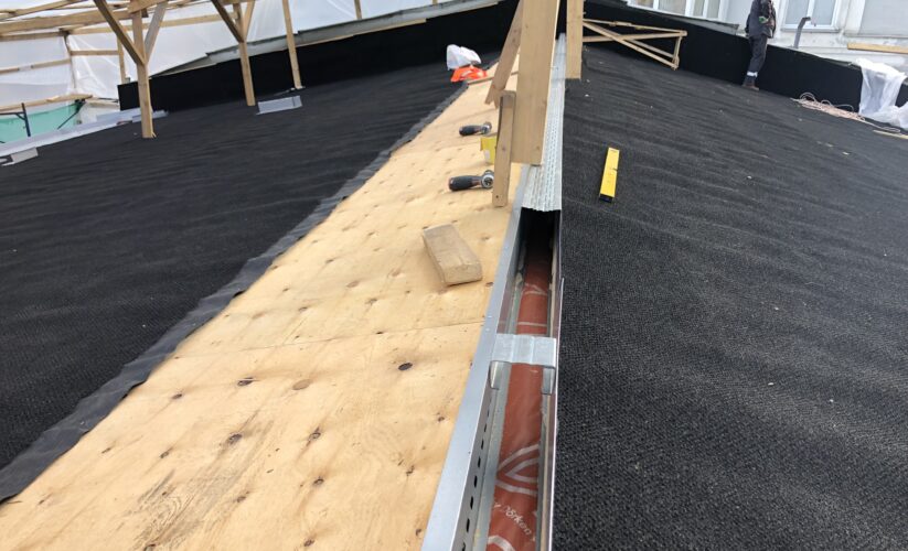 — монтаж сплошного настила из фанеры;