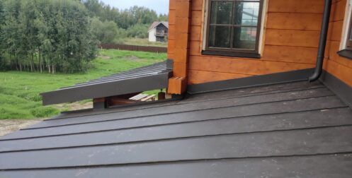— монтаж фальцевого покрытия на двойной фальц с монтажом фасонных элементов, в качестве кровельного покрытия применялась кровельная сталь с поллимерным покрытием SSAB Pural Matt RR толщиной 0,5 мм;