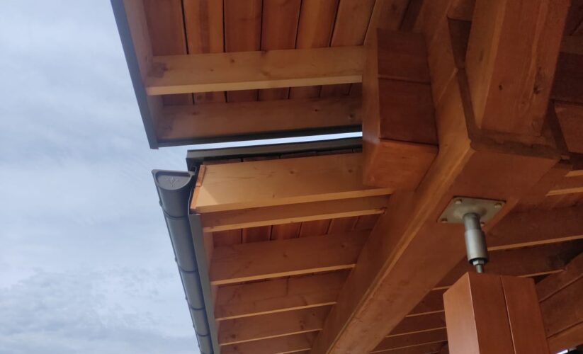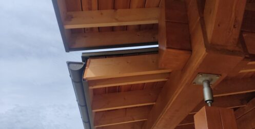 — монтаж водосточной системы (подвесные желоба и водосточные трубы);