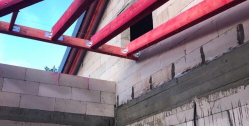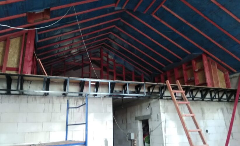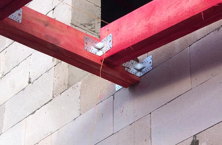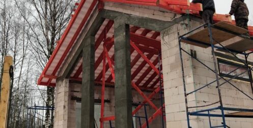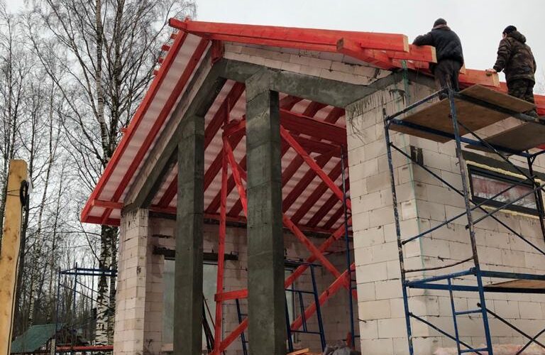 — монтаж стропильной системы из спаренной доски 50х200 мм;