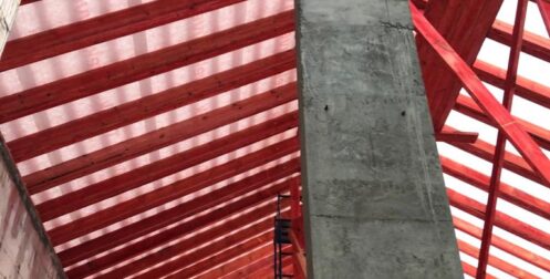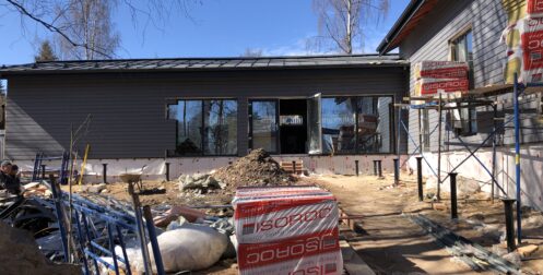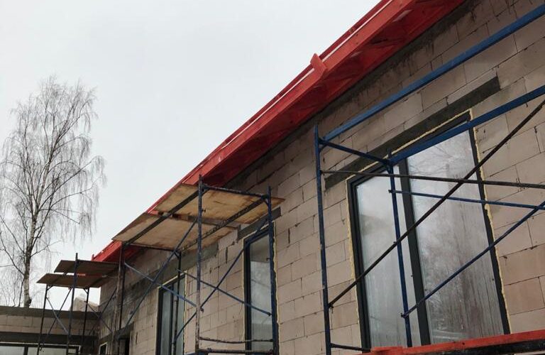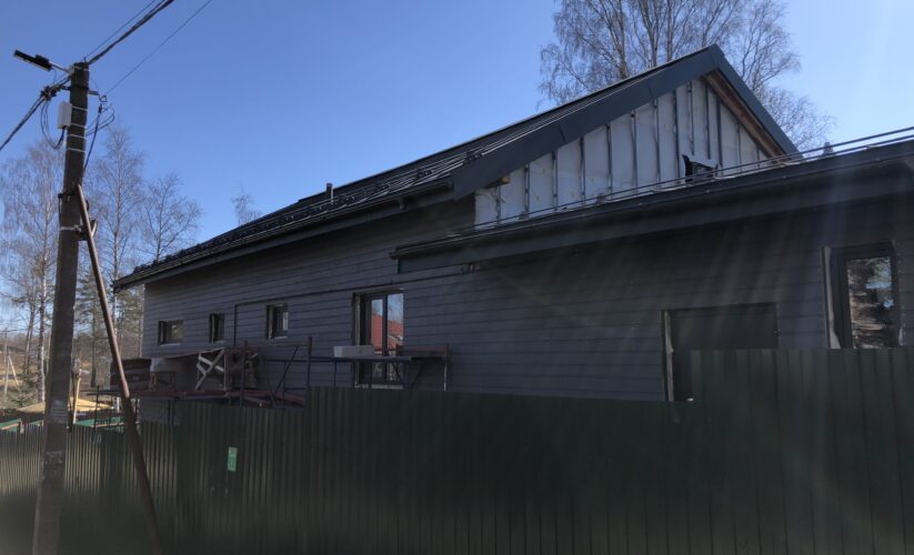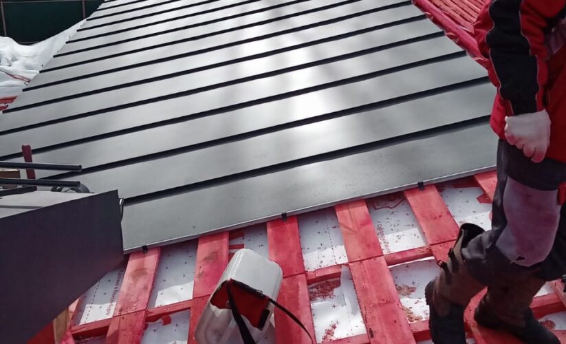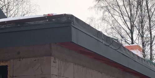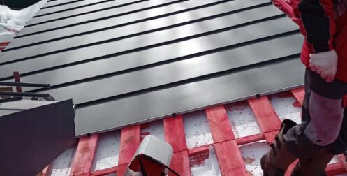 — монтаж фальцевого покрытия на двойной фальц с монтажом фасонных элементов, в качестве кровельного покрытия применялась кровельная сталь с поллимерным покрытием Satin RAL толщиной 0,5 мм;