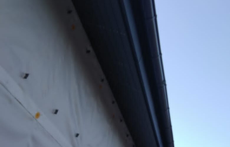 — монтаж водосточной системы состоящей из подвесных желобов и водосточных труб;