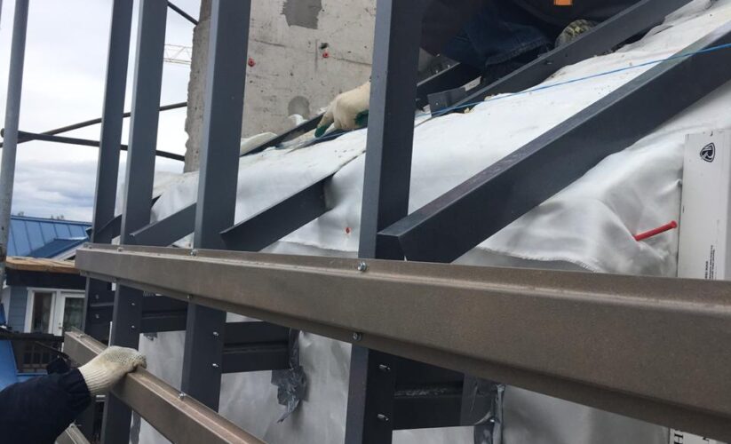 — монтаж контробрешетки и обрешетки из металлопрофиля;