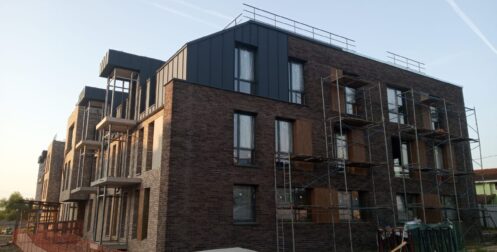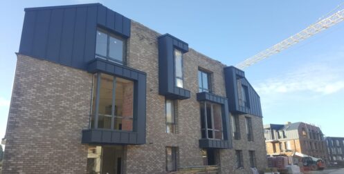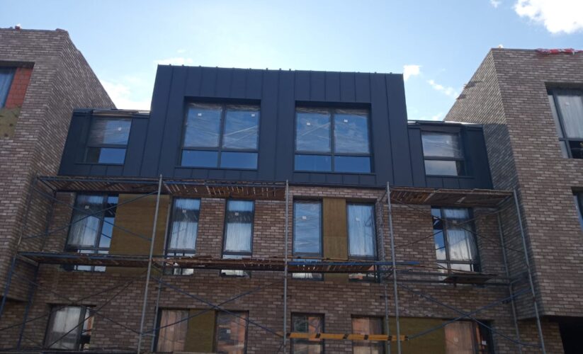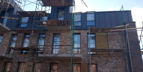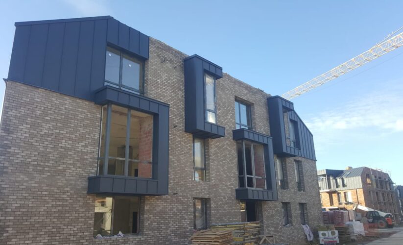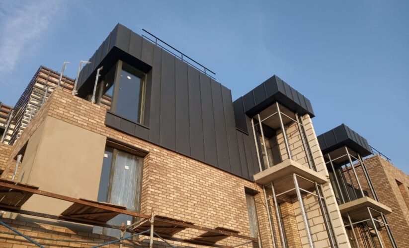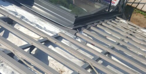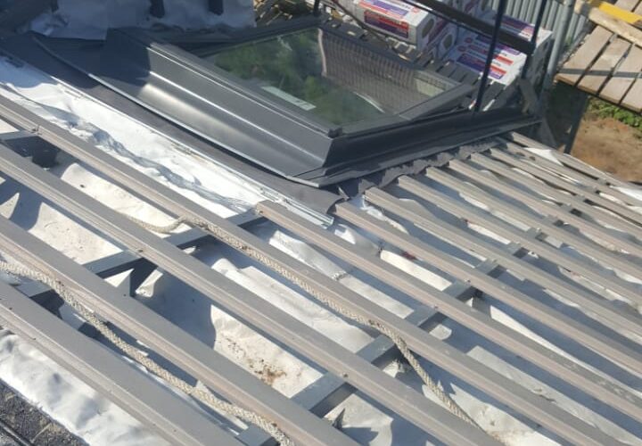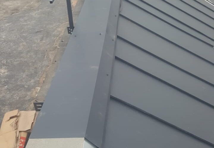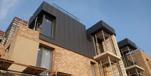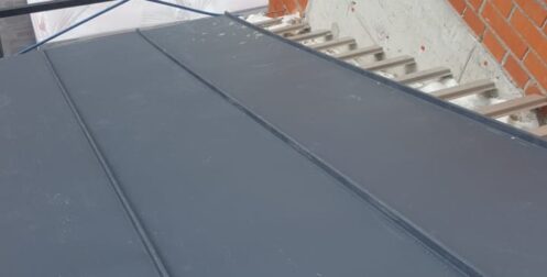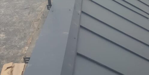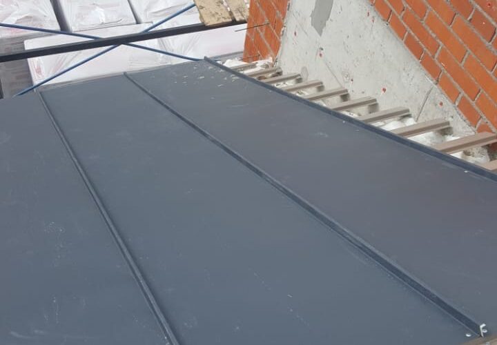 — монтаж фальцевого покрытия на двойной фальц с монтажом фасонных элементов, в качестве кровельного покрытия применялась кровельная сталь с полимерным покрытием «Стальной бархат» толщиной 0,5 мм;